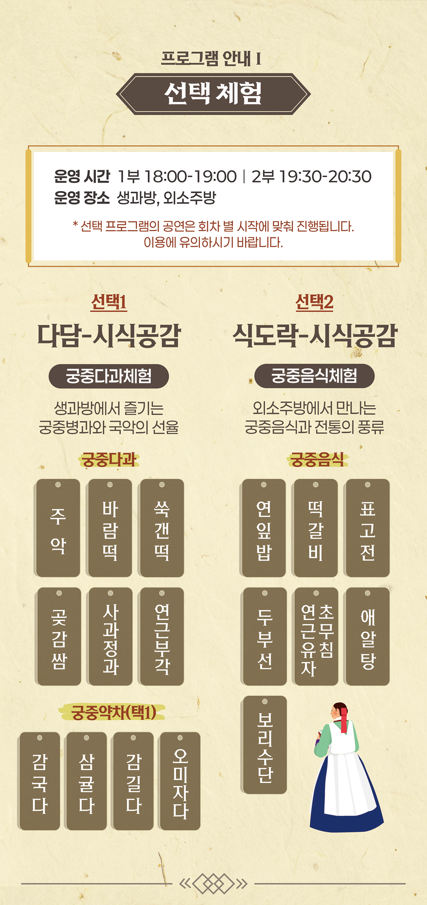 다담-시식공감에서는 생과방에서 궁중병과와 국악 연주를 즐길 수 있고,